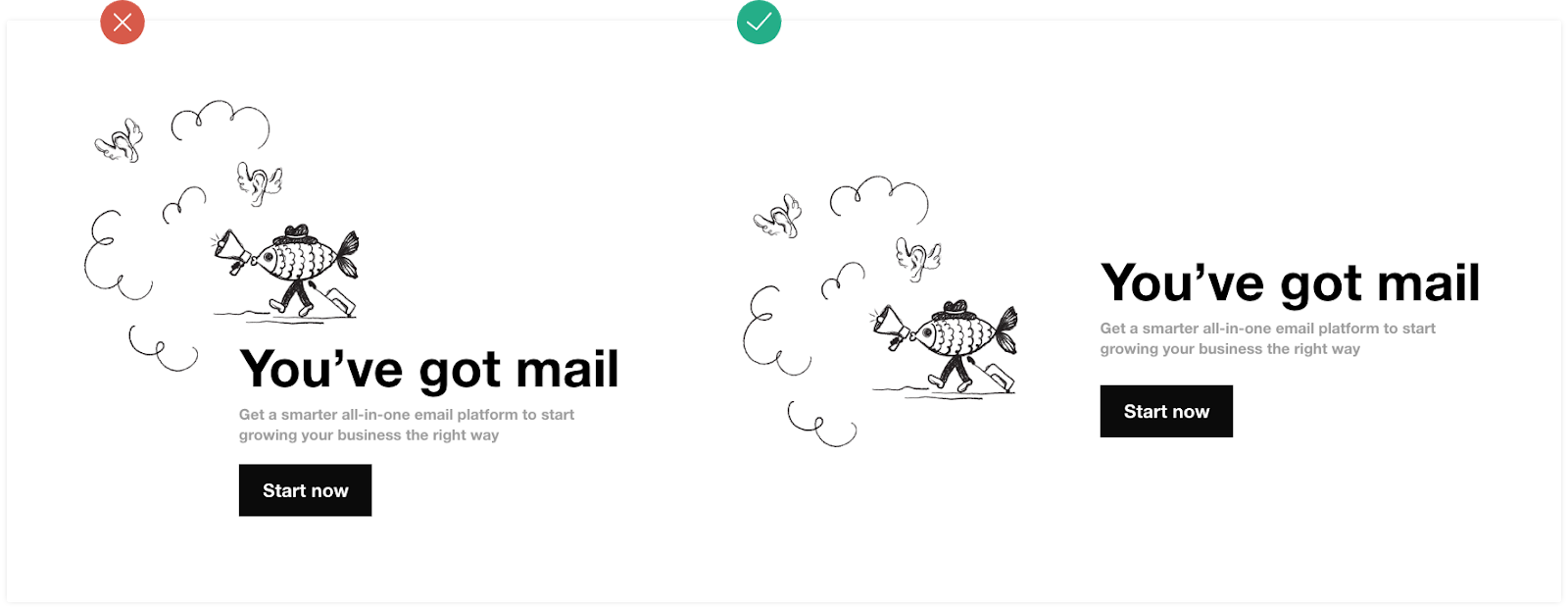 To avoid making this mistake, always use padding and margins in every element of the design that you are creating. And keep working with your designer to remove anything that isn’t absolutely essential for creating the effect you want, and getting across the message you need to.