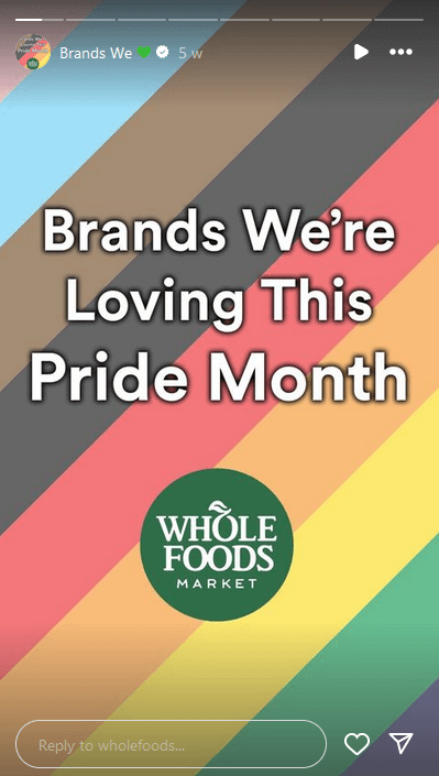 In the below Story, popular supermarket chain Whole Foods featured some of their favorite brands during Pride Month. Taking cues from this combine seasonal campaigns with such shoutout posts on your Instagram Stories.