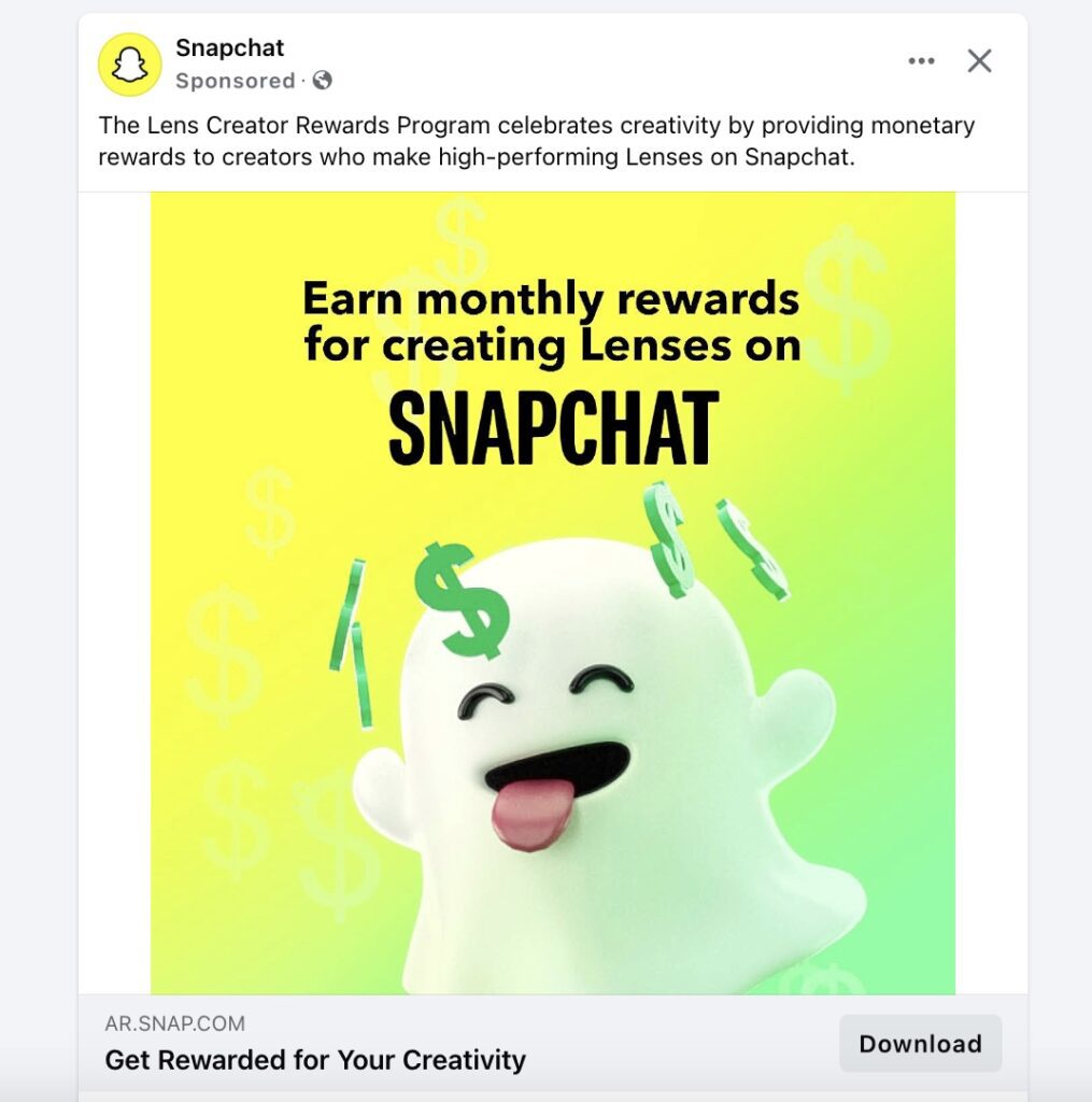 Here’s an ad from Snapchat on Facebook capturing all these details.