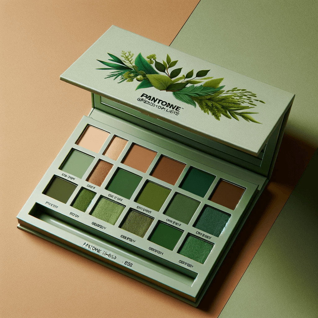 DALL.E’s version of “a PANTONE 15-0343 Greenery-inspired eyeshadow palette with a mix of earthy and lively tones” shows how this bold color finds its place in the most unexpected applications like makeup, especially when you wish to create a statement look.