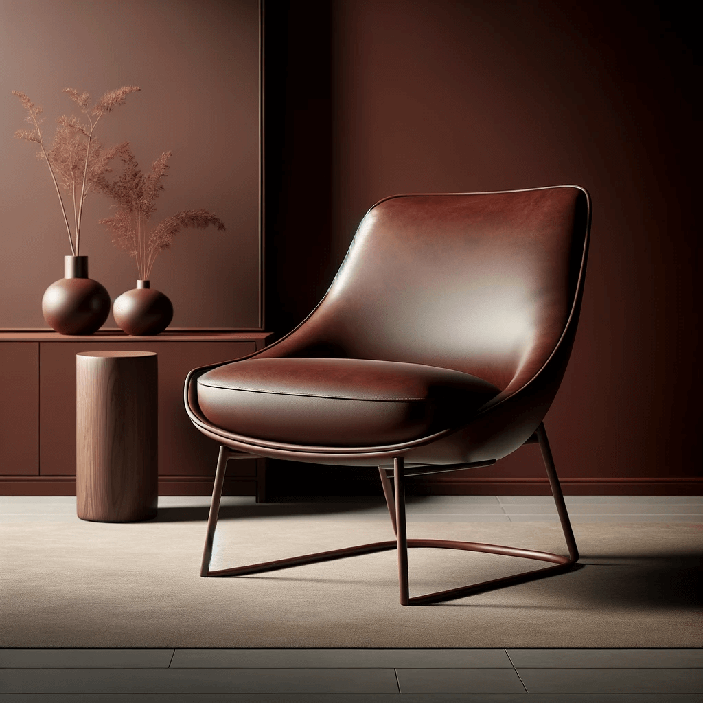 To explore the modernity of Marsala, its relevance in contemporary aesthetics, we asked DALL.E to “design a contemporary Marsala-toned accent chair, creating a stylish focal point in a modern home.” Here’s what it looks like.