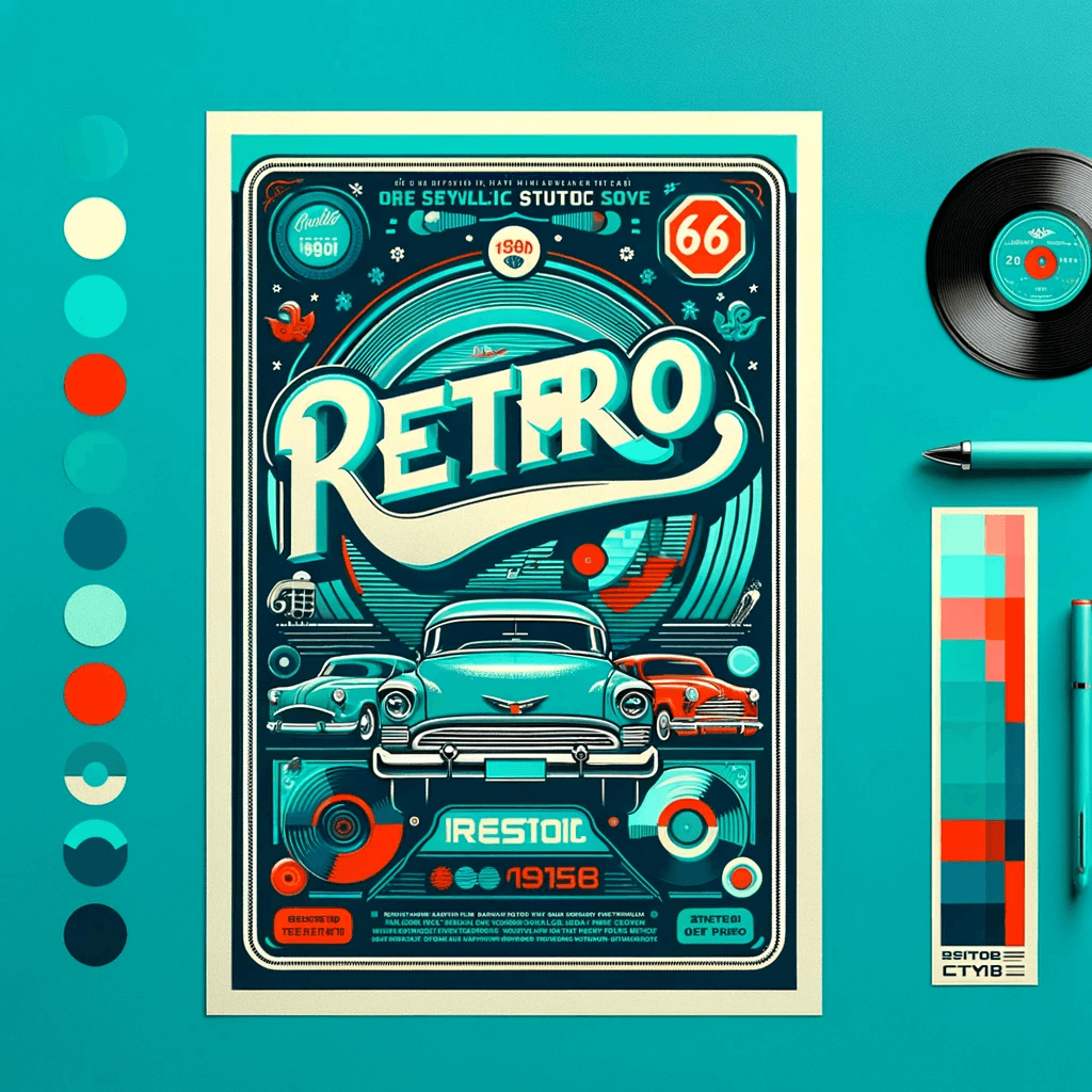How do you use Pantone colors like this one in your designs? Well, your options are endless. To ignite your imagination, we asked ChatGPT to “design a retro-inspired poster with PANTONE 15-5519 Turquoise as the primary color” and here’s what we got!