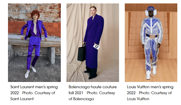 Fashion magazines pointed out that different variations of purples appeared in the Spring 2022 collections from popular fashion labels following the Very Peri trend.