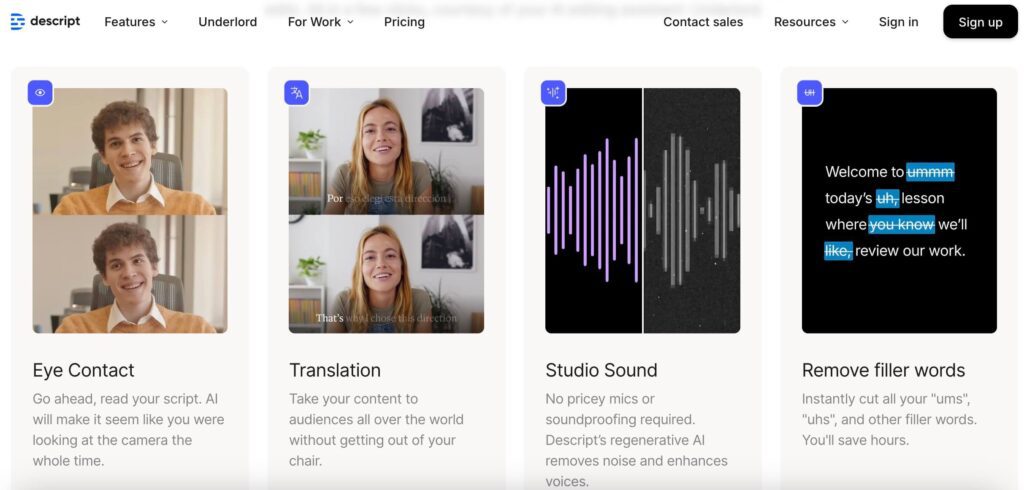 Once you have the basic video edits sorted, if you wish to bring more spice to it with AI-powered features, Descript will not disappoint you.