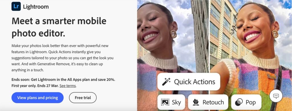 Lightroom offers some very detailed image customization and color correction features to let content creators refine their photos and get them social media-ready. There are also some experimental AI editing options currently supported on the platform.