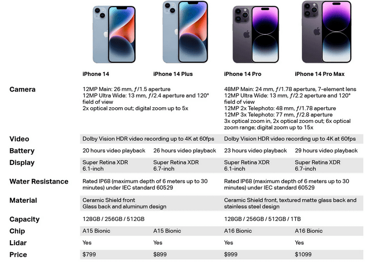 Take the iPhone 14 series for example. The iPhone 14, iPhone 14 Pro, and iPhone 14 Pro Max models were initially priced at $699, $999, and $1099 respectively in the US. With the iPhone 14 Pro Max being the most advanced, feature-packed option and with a bigger screen as well. Moreover, all this was available at a slight increase of $100 over the iPhone 14 Pro.