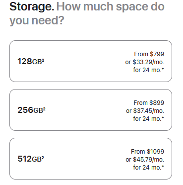 The same applies to Apple’s offerings in terms of the storage capacity of their smartphones. The below image shows the price variations based on the storage capacity of iPhone 15.