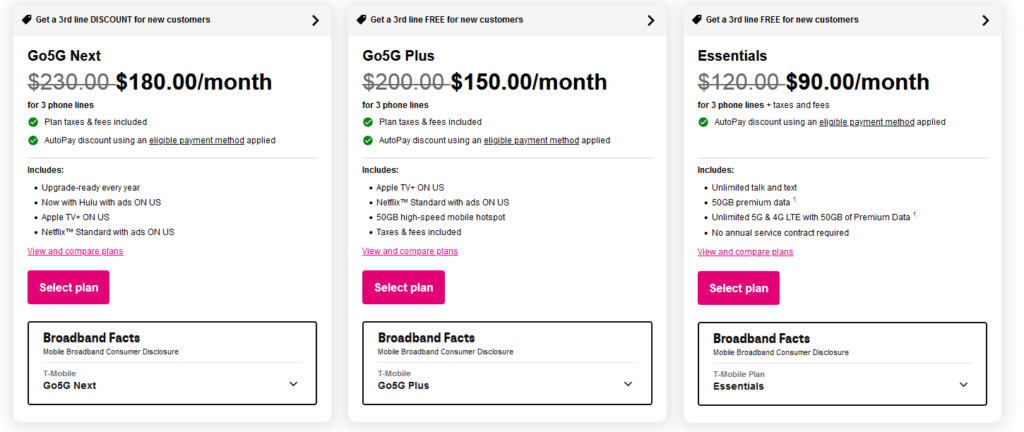 The current plans and prices offered by T-Mobile can also be explained from the decoy effect perspective. Here’s a quick comparison of the plans for reference.