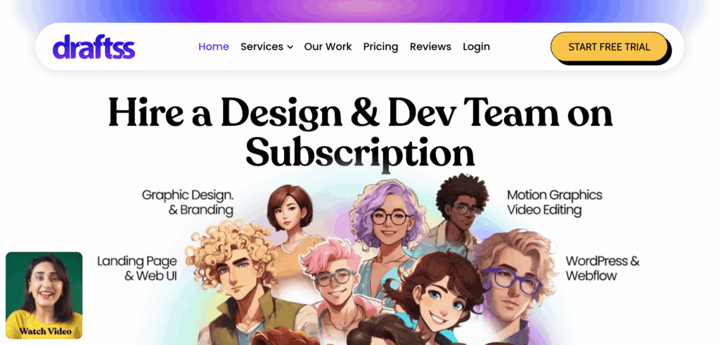 Draftss is a multi-service creative subscription designed for startups that need more than just graphics to kickstart their digital presence. Its expensive offerings make it one of the most cost-effective unlimited graphic design services for startups.