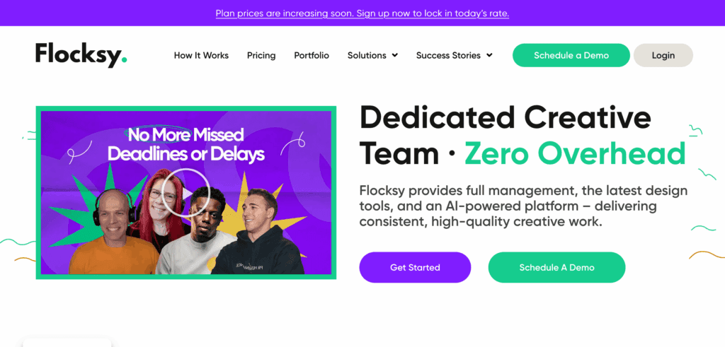 With flat-rate plans, AI-powered tools and comprehensive design services, Flocksy stands out as one of the best-rated unlimited design services for startups.