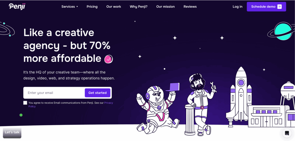 Founded in 2017, Penji caters to 120+ creative services. It operates as a subscription-based, unlimited graphic design service that pairs startups with vetted designers through a managed workflow focused on speed, volume, and ease of use.