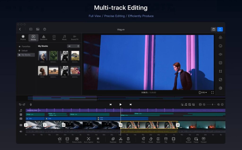With the multitrack timeline, editing and synchronizing various elements of the video like visuals, text, transitions, and audio is easy on the platform.