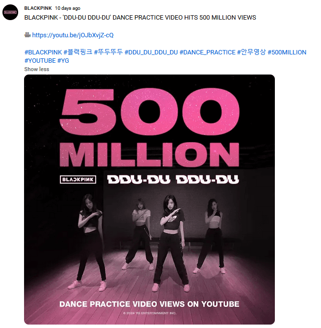 The below Community Post from the popular YouTube channel BLACKPINK is about a big view milestone of one of their videos. Most of their Community Posts focus on how well their videos perform therefore showing their consistent success rate. Moreover, posts like this one evoke the curiosity of users driving them to the featured content.