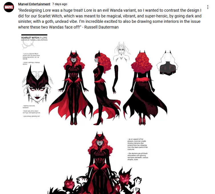 Another great example is from the Marvel Entertainment channel on YouTube. The post here talks about some background information about the design of the costume for a popular Marvel character. These are the kinds of details that excite fans.